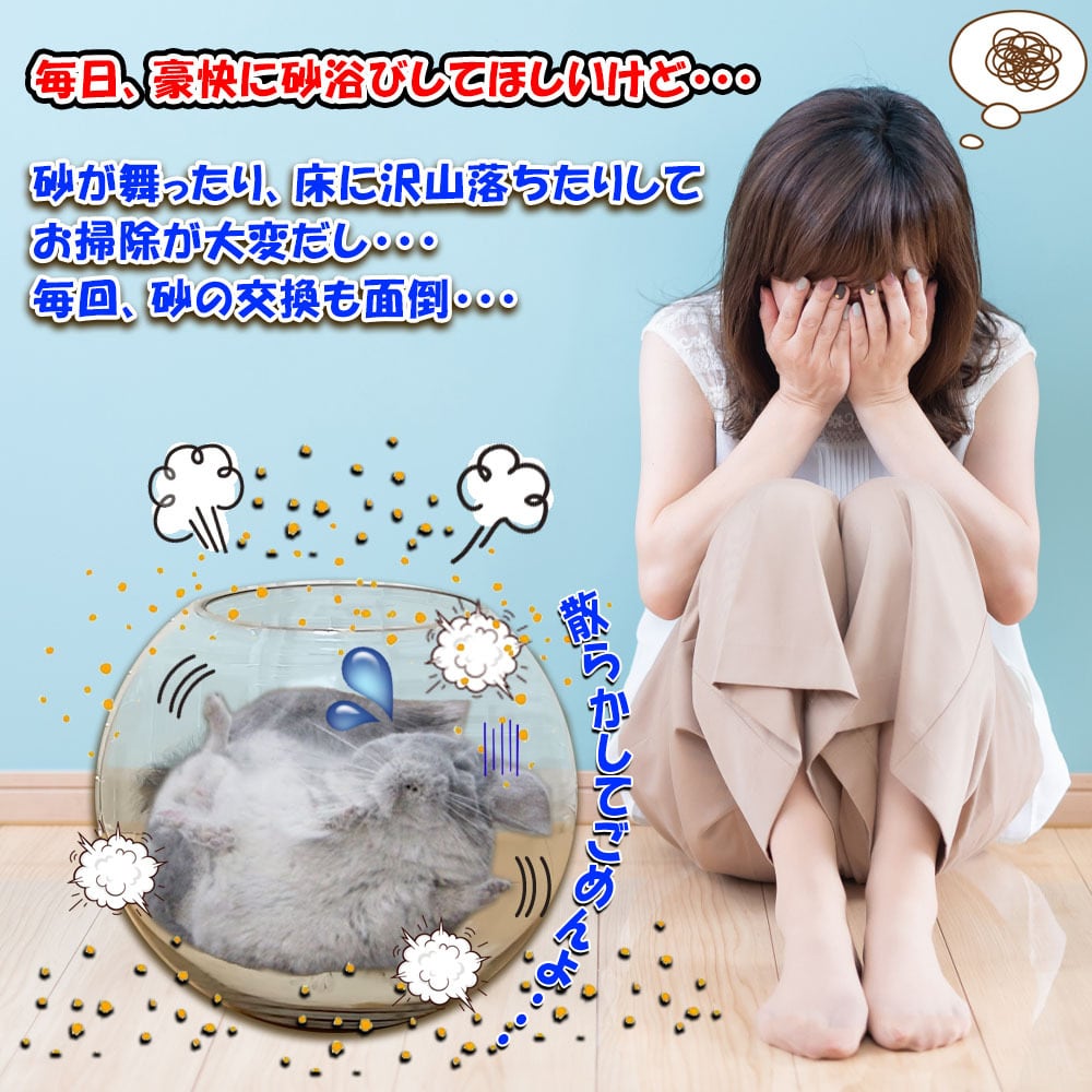 ◼️「毎日豪快に砂浴びさせてあげたいけど、砂の大量な飛び散りで掃除が大変…」